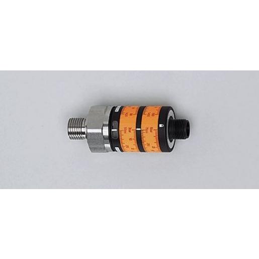 Drucksensoren, Elektronischer Druckschalter, Messbereich: 0…25 bar / 0…363 psi, Prozessanschluss: G ¼ A / M5 I, 4-Leiter, DC PNP, Betriebsspannung: 9,6…32 V DC, Stromaufnahme: 25 mA, antivalent Steckverbindung, M12-Steckverbindung, Werkstoff Gehäuse: PBT (Pocan) PC (Makrolon) FPM (Viton) V4A (1.4404), Werkstoffe in Kontakt mit dem Medium: V4A (1.4404) FPM (Viton)