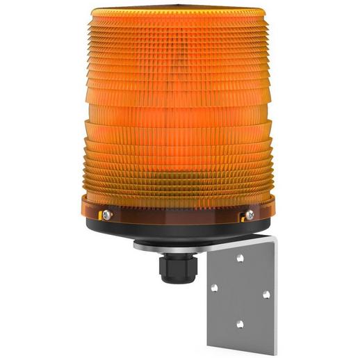 Extrem helle Rundum-Blitzleuchte mit oranger Haube, Fresnel-Optik und Edelstahl-Montagewinkel- Die Funktion der Blitzleuchte wird intern über einen optischen Sensor und einer Auswerteschaltung überwacht- Beide Teilsysteme (Blitzleuchte und Überwachungseinheit) haben separate Betriebsspannungsanschlüsse- geringe Stromaufnahme, hohe Zuverlässigkeit und lange Lebensdauer durch Verwendung modernster elektronischer Bauteile – ohne Austausch mechanischer oder elektrischer Verschleißteile- vielfältige Montagemöglichkeiten – direkt (DM) oder mit einem Winkel (WM)- Austauschbarkeit durch weit verbreitetes Bohrbild gegeben- Blitzröhre zusätzlich mit Stahlbügel gesichert – Maximale Sichtweite 366 m- Lebensdauer: nach 8 Mio. Blitzen noch 70% Lichtemission- Maße: 177 mm Durchmesser x 185 mm (abhängig von der Montageart)- Betriebstemperatur -30C – +55C