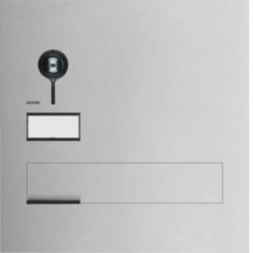 Briefkastenfront-Mauerdurchwurf Video 1/1 2Draht Edelstahl matt ONE. Video Außenstation für Sprechanlage nach DIN EN 50486 in 2Draht-Technik mit Mauerdurchwurf-Briefkastenfront für Hausbriefkästen nach DIN EN 13724 zur Montage auf separat erhältlichem Durchwurf-Kasten. Außenstation bestehend aus einer 2 mm dicken Frontplatte aus Edelstahl matt gebürstet mit Sprech- und Kameraöffnung, Farbkamera mit kratzfester Abdeckung, schraubenlose Befestigung mit Einrast-Federmechanismus und Öffnungsmechanik mit Vandalenschutz für Mauerdurchwurf-Kasten, Einwurfklappe(n) mit schwarzem Griffstück 110 Grad öffnend und gedämpft schließend, flächenbündiges Namensschild(er) (von vorn wechselbar) mit Ruftaste(n) inklusive weißer LED-Hinterleuchtung und steckbarem Anschluss-Klemmblock mit Schraubklemmen. Vorverdrahtete Frontplatte mit Elektronikkomponenten in gekapselter Monoblock-Bauweise mit Lautsprecher, Mikrofon und Kamera. Geräte-Konfiguration über rückseitiges LED-Display mit 3 Softtasten und 7-Segment-Anzeige, Anzeigemodus 180 Grad drehbar für eine optimale Lese- und Bedienbarkeit sowie automatische Adressierung bei erstmaligem Spannungszuschaltung. Umgebungslicht abhängige Einschaltung der Tastenbeleuchtung, anpassbar an Umgebungsverhältnisse über Helligkeitssensor. Funktionen: Kamera horizontal und vertikal ein- und feststellbar von vorne, Umgebungslicht abhängige Einschaltung einer integrierten IR-Beleuchtung zur Unterstützung der Kamerafunktion bei Dunkelheit, integrierte Kameraheizung zur Vermeidung von Kondensat- und Frostbeschlag der Kamerakugel. Integrierter Türöffnerkontakt, Ruftaste mit Licht-/Türöffner-/Relais-Funktion einstellbar. Lautstärke, Mikrofonempfindlichkeit, Türöffnerfunktion und Ruftaster-Hinterleuchtung einstellbar. Ruftaster mit Quittierungston (abschaltbar) und taktiler Rückmeldung. Lautsprecher und Mikrofon sabotagegeschützt. Ein-Mann-Inbetriebnahme durch LED-Display Konfiguration.