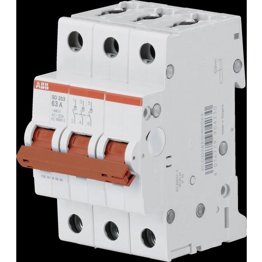 Die SD 200 erweitern das bewährte System pro M compact® um Lasttrennschaltern. Die Baureihe ist in 1- bis 4-poligen Ausführungen mit Bemessungsströmen von 16 bis 63 A verfügbar und haben Trennereigenschaften nach DIN EN 60947-3. Der SD 200 eröffnet mit einer Bemessungsspannung von 253/440 V AC, einer bedingten Kurzschlussfestigkeit von 25 kA, Zylinder-Hubklemme mit 2 Klemmstellen und Hintersteckschutz neue Einsatzmöglichkeiten. Die ?Real CPI? Schaltstellungsanzeige gibt den Schaltzustand des Gerätes eindeutig an. eine eindeutige Seine volle Kompatibilität mit allen MCB Zubehörteilen machen ihn einzigartig auf seinem Gebiet.