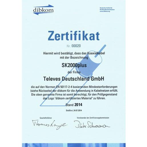 Mit hervorragenden Schirmungsmaß und Dämpfungseigenschaften und einem ausgezeichneten Preis/Leistungsverhältnis ist das SK 2000 plus das ideale Kabel für BK-/SAT- oder terrestrische Anlagen. 135 dB typ. Schirmungsmass ( EN 50117) Kopplungswiderstand < 3,5 m½/m (5 - 30Mhz) Hochgeflecht 168 Adern (Kupfergeflecht) 3-fach geschirmt Folie (geklebt) -Geflecht maß Folie Dielektrikum PE - beschichtet Dämpfungsarm ( 2050 MHz - 27,4 dB)