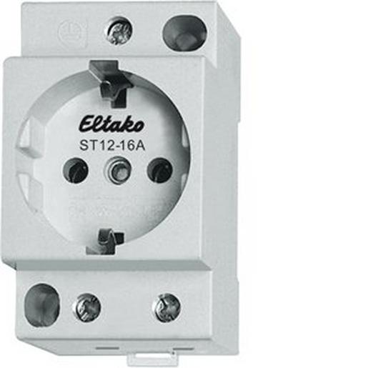 16A-Einbausteckdose als Reiheneinbaugerät für Montage auf Tragschiene und Aufbaumontage.