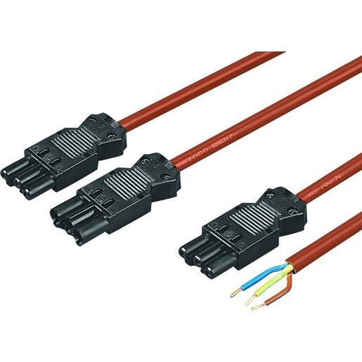 Anschlussleitung, Durchgangsverdrahtung/Einspeisung über Anschlusselement SZ 2507.500 (mit Buchse und Stecker), Farbe: orange, Beschreibung: Für Einspeisung oder Durchgangsverdrahtung., Montageplatten, Schienensysteme, Befestigungselemente, Geräteböden, Systemleuchten, EMV, Erdung, Steckdosenleisten