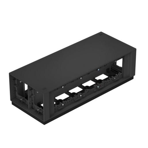 Zum kombinierten Einbau von 12 einzelnen Installationsgeräten mit Tragering oder -bügel (12 Installationsgeräte einer Stromart oder jeweils 6 Installationsgeräte zweier Stromarten). Die verschiedenen Stromarten werden durch eine Trennwand gegeneinander isoliert. Bei Verwendung von Mehrfach-Installationsgeräten kann die Anschlusskapazität entsprechend erhöht werden.Schraubbefestigungsspur für Installationsgeräte: 60 mm senkrecht.