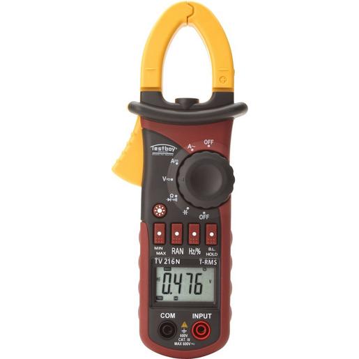 Testboy TV 216NDigitales ZangenamperemeterGleich- und Wechselstrom bis 600AGleich- und Wechselspannung bis 600VWiderstand bis 60 MOhmakustische Durchgangsprüfunggut lesbarer Display Diodentestintegrierte LED-Taschenlampeinkl. 1 x berührungssicherem Messleitungssatzinkl. 3 x Batterien AAAinkl. 1 x BereitschaftstascheIEC/EN 61010-1 (DIN VDE 0411)5 Jahre Herstellergarantie