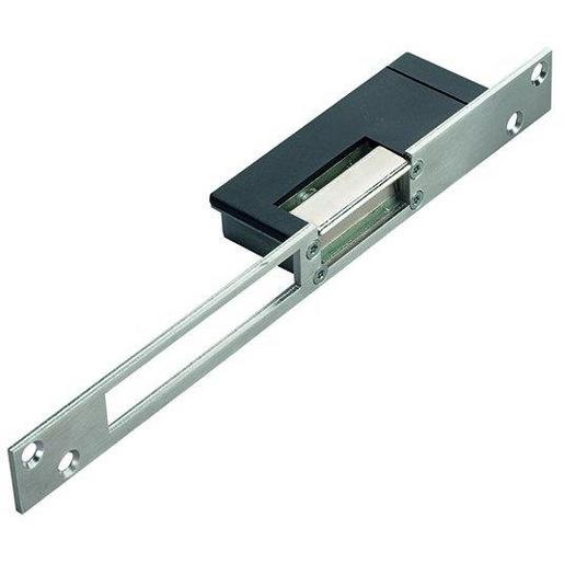 Türöffner, 12V AC/DC 0,5 A 20 Ohm, 1000 kg, Arretierung, Kasten 35(T) x 90 x 20 mm, Schließblech 250 x 25 x 3, IP54, DIN rechts, 250 x 25 x 35 mm