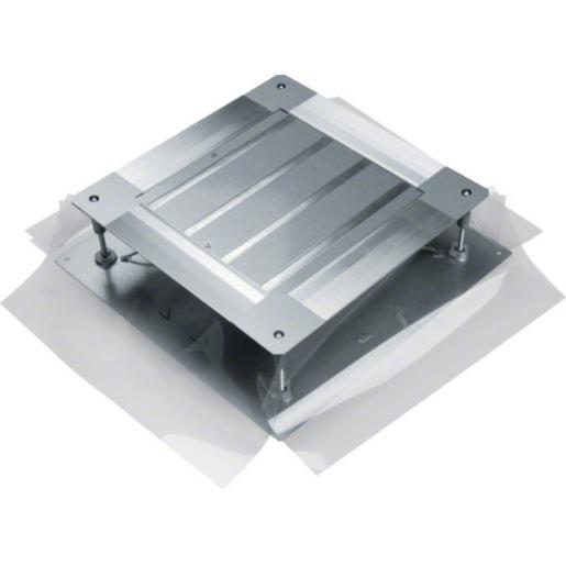 Universal-Bodendose mit Bodenblech Größe 2 428x428x(120-170)mm. Universal-Bodendose nach DIN EN 50085-1 und DIN EN 50085-2-2 geeignet für alle Kanalbreiten bis Nennmaß, mit flexibler Folienschalung, Bodenblech, Montageschutzdeckel und innenliegender stufenloser Höhennivellierung, akkustisch entkoppelt, Rissminimierung des Estrichs im Einbaubereich durch bewegliche Lagerung.
