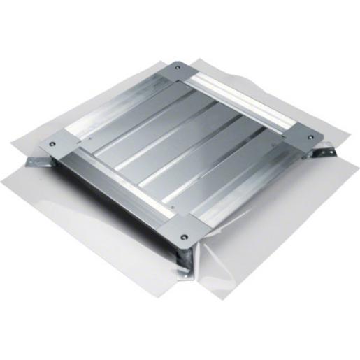 Universal-Bodendose mit Haltepratzen Größe 3 498x498x(50-80)mm. Universal-Bodendose nach DIN EN 50085-1 und DIN EN 50085-2-2 geeignet für alle Kanalbreiten bis Nennmaß, mit flexibler Folienschalung, Haltepratzen, Montageschutzdeckel und innenliegender stufenloser Höhennivellierung, akkustisch entkoppelt, Rissminimierung des Estrichs im Einbaubereich durch bewegliche Lagerung.