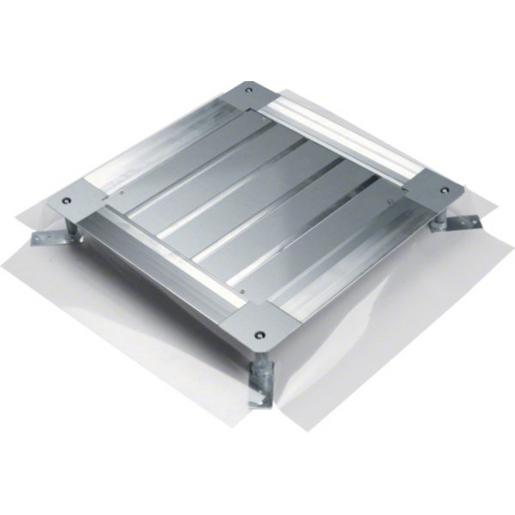 Universal-Bodendose mit Haltepratzen Größe 3 498x498x(75-125)mm. Universal-Bodendose nach DIN EN 50085-1 und DIN EN 50085-2-2 geeignet für alle Kanalbreiten bis Nennmaß, mit flexibler Folienschalung, Haltepratzen, Montageschutzdeckel und innenliegender stufenloser Höhennivellierung, akkustisch entkoppelt, Rissminimierung des Estrichs im Einbaubereich durch bewegliche Lagerung.