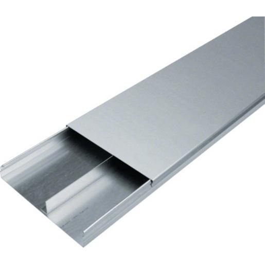 Unterflurkanal 2-zügig estrichüberdeckt aus Stahlblech UK 240x38mm. Unterflur-Installationskanal nach DIN EN 50085-1 und DIN EN 50085-2-2 für estrichüberdeckte Montage mit Trennsteg, abnehmbares, mit Trennstegmarkierungen versehenes, Oberteil zum einfachen Einlegen von Leitungen.