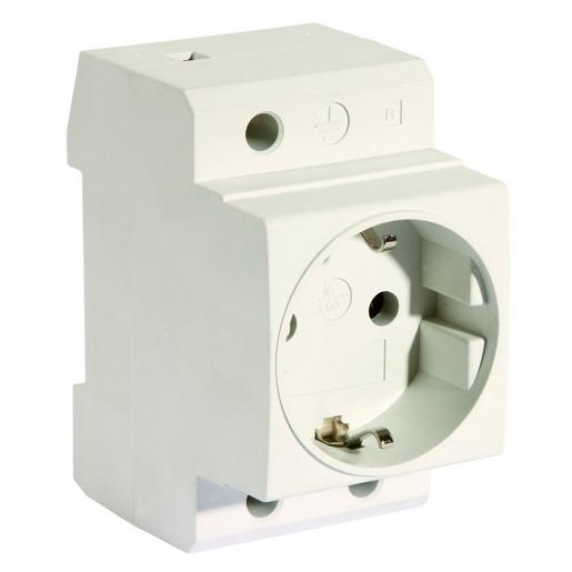 Verteiler-Einbausteckdose, Schutzkontakt-Steckdose für 35 mm-Tragschiene nach EN 50 0 22, Prüfzeichen: VDE, Schutzkontakt-Steckdose, Farbe: grau