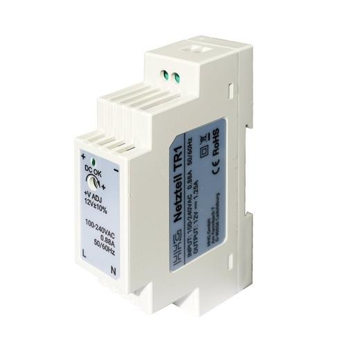 Hutschienen-Schaltnetzteil 110-230V AC Eingang, 12V DC, 1,25A Ausgang, zur Montage auf DIN-Hutschiene 1,5 TE, z.B. als Spannungsversorgung für eine externe Kamera