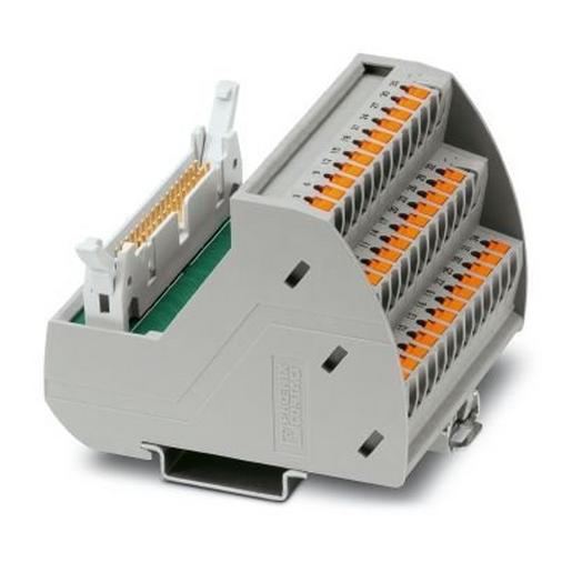 VARIOFACE-Modul, mit Push-in-Anschluss und Flachbandkabel-Steckverbinder, zur Montage auf NS 35-Tragschienen, mit Stiftleiste sowie kurzen und langen