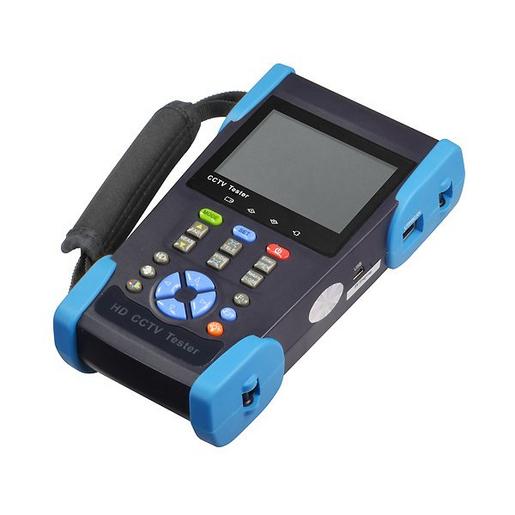 Testgerät für AHD- und PAL analoge Überwachungskameras bis max. 5MP Auflösung, mit 88mm (ca.3,5 Zoll) LCD Bildschirm / 480 x 320 Pixel Auflösung. Video-Ein- und -Ausgänge über BNC-Buchsen. 12V DC, 1A-Ausgang für Kameraversorgung. PTZ-Steuerung über RS 485 und über das Koaxialkabel mit verschiedenen Protokollen (inkl. Pelco D) und Baud Rate. Steuerung von OSD-Menüeinstellungen und Motorzoom einer AHD-Kamera über das Koaxialkabel. Prüfung von Videostärke, Audiosignal und RS 485 Datenempfang, UTP-Kabelprüfung und Absenden von Testbildern. Integrierte LED-Lampe. Betrieb über Li-Ion Akku 3,7V, 3000mAH für bis zu 11 Stunden. Aufladung über mitgeliefertes 5V USB-Netzgerät. Inkl. Tragetasche, Trageband, UTP-Kabeltester, RS 485 Anschlusskabel. Gewicht: 480g, Abmessungen: 112 x 194 x 48mm.