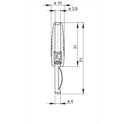 Vollkontakt-Stecker mit Stift, Hülse biegsam und trittfest, Dauerbetriebsstrom.