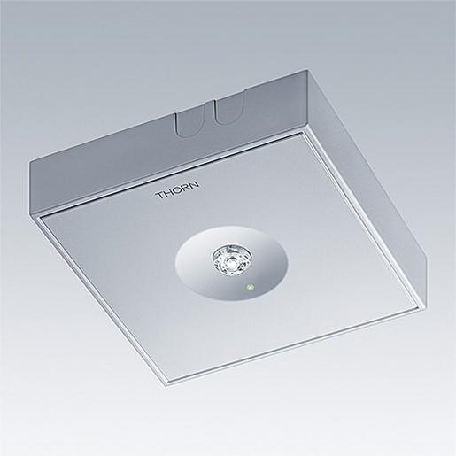 LED Sicherheitsleuchte zur Beleuchtung von Brandbekämpfungs- und Erste-Hilfe-Einrichtungen sowie Gefahrenstellen mit min. 5 lux vertikal gemäß EN 1838, Komplett inklusive LEDs., high power LED, kaltweiß 5.600 Kelvin, Linse aus Polycarbonat (PC), optimales Thermomanagement mittels Kühlblech, Decken-Anbauleuchte, Schraubmontage des Geräteträgers, werkzeuglose Schnellmontage der Abdeckung, Geräteträger aus verzinktem Stahlblech, Abdeckung aus Aluminiumdruckguss, pulverbeschichtet, silbergrau (ähnlich RAL9006), Leuchte mit Einzelbatterieversorgung für 3 h Notlichtbetrieb in Dauer- oder Bereitschaftsschaltung, automatischer Test (Autotest) durch die Leuchte, optional zentrales Monitoring über DALI, Anzeige des Leuchtenstatus über Status-LED, Adressierung optisch oder per EZ-Adressierung möglich, Dauerschaltung: +5°C bis +30°C, Bereitschaftsschaltung: +5°C bis +35°C, Spannungsversorgung: 220-240 V AC (+/- 10%), 50-60 Hz, Leuchten Leistung: 4,2 W, Bereitschafts- und Dauerschaltung über Drahtbrücke zwischen L und L“ einstellbar, SC1, Leuchte halogenfrei und silikonfrei verdrahtet, Steckklemmen zur Durchgangsverdrahtung bis zu 2,5 mm², Schlagfestigkeit: Raumhöhe bis 2,5 m, Abmessungen: 146 x 146 x 34 mm, Gewicht: 0,75 kg,