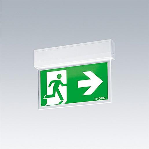 Ultra schlanke LED-Fluchtwegeleuchte zur Anbau-, Wand- oder Deckenmontage, Deckeneinbaumontage möglich mit optionalem Rahmen zum Deckeneinbau, Leuchte für zentrale Notlichtversorgung zur Einzelüberwachung der Leuchte über Powerline am CPS-System, einstellbarer Notlichtlevel, Bereitschafts- und Dauerschaltung über das Zentralbatteriesystem einstellbar, Gehäuse aus Polycarbonat (PC), einfache Leuchtenmontage, schnell einbaubare Anschlussklemme, Durchgangsverdrahtung möglich mit bis zu 2,5 mm², inklusive montierbare ISO 7010-Richtungszeichen (links, rechts, aufwärts, abwärts und leer), sichtbar aus einer Maximaldistanz von 23 m, Montage der Richtungszeichen mit unauffälligem Stift, keinerlei Wartung dank LED-Technologie, Betriebslebensdauer von 50.000 Std. bei konstantem Lichtstrom, einheitliche Rückbeleuchtung der Piktogramme, Leuchtdichte > 500 cd/m² in der Weißregion, Stromversorgung: 220/240 V AC, Leuchten Leistung: 5,7 W, Schutzgrad: IP43, Schutzklasse: Schutzklasse II, Schlagfestigkeit: Schlagfestigkeit: IK03, Abmessungen: 265 x 37 x 191 mm, Gewicht: 0,9 kg