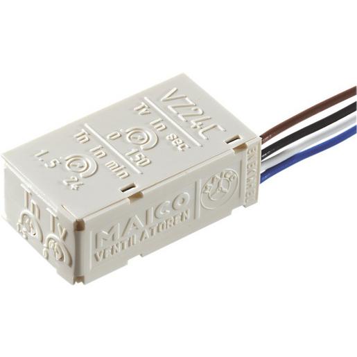Verzögerungszeitschalter zur Steuerung der Einschaltverzögerung und Nachlaufzeit von Ventilatoren. Betätigung über handelsübliche Schalter möglich. VZ 24 C: Betätigung über handelsübliche Schalter oder Taster möglich. Störfest gemäß EN 61000-4-5 (bei 1000 V bis 4000 V). Bei Bedarf zusätzliche Entstörmaßnahmen treffen (L-, C- oder RC-Glieder, Schutzdioden, Varistoren).Artikel: VZ 24 C, Bemessungsspannung: 230 V, Netzfrequenz: 50 Hz / 60 Hz, Maximalbelastung: 1,25 A, Schutzart: IP 40, Gewicht: 0,01 kg, Gewicht mit Verpackung: 0,02 kg, Breite: 20 mm, Höhe: 13 mm, Tiefe: 35 mm, Breite mit Verpackung: 20 mm, Höhe mit Verpackung: 13 mm, Tiefe mit Verpackung: 35 mm, Umgebungstemperatur: 0 °C bis 50 °C, Fernbedienung: nein, Nachlaufzeit: 1,5 min – 24 min, Einschaltverzögerung: 0 s – 150 s