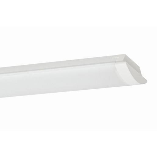 Deckenleuchte der WL-Produktfamilie. Lichtlenkung durch Abdeckung opal, Ausstrahlungscharakteristik symmetrisch, extrem breitstrahlend, Lichtaustritt direkt. Leuchtmittel R-TUBE nicht enthalten, Austausch durch Endkunde möglich. Die Leuchte generiert einen Bemessungslichtstrom von 2980 lm in Lichtfarbe 840, Lichtstrom einstellbar: Nein. Die hohe LED-Lebensdauer ermöglicht einen langen Einsatz bei gleichbleibender Beleuchtungsgüte. Hohe Lichtqualität durch eine Farborttoleranz von < 3 SDCM. Gehäuse aus Stahl, weiß, Schutzart IP40. Decken- oder senkrechte Wandmontage ohne weiteres Zubehör. Halbeinbaumontage mit speziellem Befestigungssatz WL-HES. Seil- oder Rohrpendelmontage mit entsprechenden Befestigungssätzen. Bei einlampigen Leuchten sind bei Seilpendelmontage an ZSPTK, Rohrpendel- und Tragschienenmontage Ausgleichsgewichte notwendig (siehe Zubehör). Mit elektronischem Betriebsgerät On/Off. Austausch durch Fachkraft möglich. Nennspannung 220 - 240 V AC/DC 50 - 60 Hz.