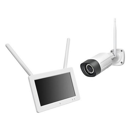 WLAN-Überwachungskameraset bestehend aus einer 3MP-Kamera WR120B4 und Empfänger mit 7 Zoll Touch-Bildschirm WR100M7. Tag/Nacht-Kamera in Metallgehäuse für innen oder außen (IP66).h. zur Wand- und Deckenmontage mit 50cm Kabelpeitsche mit DC-Anschluss, Aufl