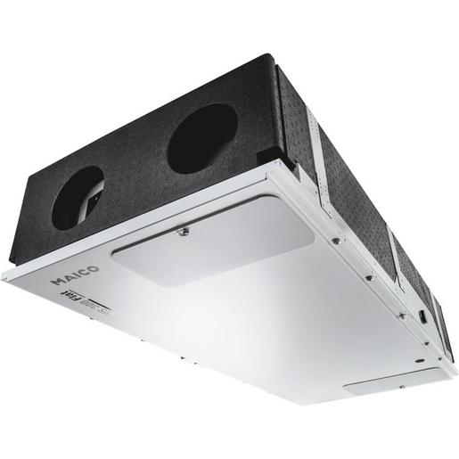 Komfort-Bypass-Ausführung links: Zentralgerät mit zwei Enthalpiewärmetauschern, integriertem Bypass und Vorheizregister. Somit wird die Raumluft bei hohen Außentemperaturen optimal gekühlt, ohne dass Zugerscheinungen auftreten und bei tiefen Außentemperaturen komfortabel vorgewärmt. Zu- und Abluft links (in Einbaulage Decke, Blick auf das Elektronikfach). Kurzbeschreibung: Intelligentes Lüftungsgerät mit Wärme- und Feuchterückgewinnung zur kontrollierten Be- und Entlüftung mit einem Fördervolumen von 80 bis 300 m3/h. Vollkommene Trennung der Abluft- / Zuluftführung im gesamten Gerät. Dadurch wird unerwünschter Umluftbetrieb verhindert. Viren (z.B. Corona-Virus) und Bakterien werden somit nicht übertragen. Hygienezertifikat nach VDI 6022, Blatt 1 vorhanden. Kompakt und hocheffizient – Energieeffizienzklasse A. Schall- und energieoptimierte Ventilatoren in EC-Technologie. KfW-Förderfähigkeit und NRW-Förderung sind gegeben. Hoher Volumenstrom bei äußerst geringer Aufbauhöhe von 30 cm und leisem Betrieb. Montagemöglichkeiten: Flexibel an der Decke, Wand oder in der Dachschräge. Keine Druckschwankungsempfindlichkeit: Die integrierte /automatische Volumenstromkonstanz-Regelung sorgt für eine dauerhafte Einhaltung des eingestellten Volumenstromes unter sämtlichen Betriebsbedingungen (z.B. Filterverschmutzung, Luftventil-Einstellungen). Somit ergibt sich auch eine einfachere Inbetriebnahme / Luftmengen-Einmessung an den Ventilen. Es ist keine Einregulierung der Volumenströme notwendig. Verschiedene Betriebsarten: Aus, Manuell, Auto Sensor, ECO-Abluft, ECO-Zuluft. Raumluftsteuerung RLS 1 WR im Lieferumfang. ISO Coarse 80 % (G4) Filter in der Abluft und ISO ePM1 60 % (F7) Pollenfilter in der Außenluft. Das Lüftungsgerät ist mit zwei hochmodernen Enthalpie-Wärmetauschern mit Hygienezertifikat nach VDI 6022, Blatt 1 ausgestattet. Das WS 300 Flat ist via APP (air@home) und dem browserbasierten Webtool (www.air-home.de) mittels integrierter LAN-Schnittstelle ansteuerbar. Plug & Play: Einfache Inbetriebnahme durch kostenlose Inbetriebnahmesoftware und serienmäßigen USB-Anschluss für Inbetriebnahme, Steuerungs-Update sowie Service. Serienmäßig integrierter Kombisensor (Feuchte/Temperatur) in der Abluft ermöglicht einen bedarfsgeführten Lüftungsbetrieb sowie eine intelligente Entfeuchtungsstrategie (Überfeuchtungsschutz). Weiterhin zeichnet sich das Gerät durch eine an den wirklichen Bedarf angepasste Frostschutzstrategie aus. Das Wärmerückgewinnungsgerät verfügt über einen Multifunktionskontakt für die Ansteuerung von z.B. Sole-Erdwärmetauscher (ungeregelte Pumpe), Betriebs- und Störungsanzeige, Vorheiz- oder Nachheizregister, Außenklappen oder Kühlung. 2 Eingangskontakte (12 V und 230 V) sind vorhanden für z.B. sicherheitstechnische Abschaltungen. Diverse Ein-/ Ausgänge ermöglichen eine regelungstechnische Verbindung zu anderen haustechnischen Geräten z.B. Wärmepumpe. Integrierte MODBUS-Schnittstelle (TCP/IP und RTU) für Integration in die Gebäudeleittechnik. Das optionale Steckmodul K-SM ermöglicht die Integration in KNX-Gebäudesysteme. Das optionale Steckmodul E-SM ermöglicht die Integration in EnOcean-Systeme. Optionale Zusatzplatinen ZP 1 und ZP 2 für Erweiterungsfunktionen wie z.B. Druckkonstanz-Regelung der EC-Ventilatoren, Zonenklappe, Sole-Erdwärmetauscher (geregelte Pumpe), Filterdifferenzdruckmessung. Maximale Geräte-Flexibilität durch verschiedenste Ausstattungs-/ Anschlussmöglichkeiten. Moderne Geräte-Modultechnik ermöglicht eine hohe Benutzerfreundlichkeit für Service und Wartung. Gehäuse: Pulverbeschichtetes Stahlblechgehäuse, Farbe: Verkehrsweiß, ähnlich RAL 9016. Filterwechsel einfach ohne Werkzeug möglich. Dichtes, wärmebrückenfreies, und schallgedämmtes Innengehäuse aus temperaturbeständigem, schall- und wärmedämmendem EPP-Material. EPP-Gehäuse mit sehr guten hygienischen/nicht hygroskopische Eigenschaften. Geräteoberfläche und Geräte-Innengehäuse sind einfach zu reinigen. Filter: ISO Coarse 80 % (G4) Filter in der Abluft und ISO ePM1 60 % (F7) Pollenfilter in der Außenluft. Werkzeugloser Filterwechsel. Bedienung: Betriebsfertig mit Ein-/ Ausschalter. Bedienteil RLS 1 WR im Lieferumfang, 4 Luftstufen, Filterwechselanzeige, Störungsanzeige. Weitere Bedienteile können parallel angeschlossen werden. Mobile Bedienung mittels APP (air@home) oder browserbasiertem Webtool (www.air-home.de) über Smartphone, Laptop oder PC ermöglicht z.B. Liveberichterstellung, Nutzerverwaltung, Bedarfsgeführter Automatikbetrieb / Zeitgesteuerter Automatikbetrieb, Manueller Betrieb / AUS, ECO-Betrieb Zuluft oder ECO-Betrieb Abluft, Filterabfragen, Fehlermeldungen. Optionales Touchscreen-Bedienteil RLS T2 WS für die Einstellung von: 2 Automatikbetriebsarten (Auto Sensor / Auto Zeit), 4 manuellen Betriebsarten (ECO-Abluft / ECO-Zuluft / MANUELL / AUS), komplette Inbetriebnahme des WS 300 Flat möglich. Optionales Design-Bedienteil RLS G1 WS: EIN/AUS, 5 Stufen, Automatikbetrieb, ECO-Zuluft, ECO-Abluft, Filterwechsel- und Störungsanzeige, USB-Anschluss für Service/Inbetriebnahme – kostenlose MAICO-Inbetriebnahmesoftware. Netzwerkeinbindung über integrierte LAN-Schnittstelle. Smart-Home ready (z.B. Loxone über Modbus TCP/IP). Modbus TCP/IP und RTU serienmäßig integriert. Optionales KNX-Steckmodul K-SM für Einbindung in die Gebäudeleittechnik www.knx.org. Optionales EnOcean-Steckmodul E-SM für die Geräteintegration in die EnOcean-Welt www.enocean-allinace.org. Steuerung: Serienmäßige bedarfsgeführte Volumenstromregelung (maßgebender Feuchtewert). Stufenlose bedarfsgeführte Anpassung der Luftmengen. Integrierte Überfeuchtungsschutz-Funktion. 3 Temperatursensoren in der Außen-, Fort- und Zuluft. 1 Kombisensor (Temperatur und Feuchte) im Abluftstutzen. Bis zu 4 externe Sensoren verschiedener Typen (CO2, VOC, Feuchte) anschließbar. Multifunktionskontakt zur Ansteuerung von z.B. Sole-Erdwärmetauscher (unge