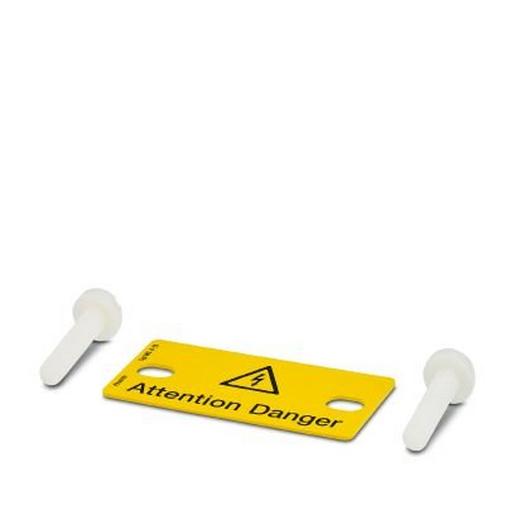 Warnschild, Platte, orange, beschriftet: Blitzpfeil und Warnhinweis in Englisch, Montageart: stecken, für Klemmenbreite: 15 mm, Durchmesser: 0 mm