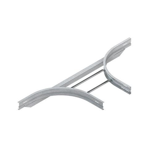 Anbau T-Stück, mit gesickten, runden und ungelochten Seitenholmen, mit Verbinderlochung für den Anschluss, mit integriertem Stoßstellenverbinder, für Weitspannkabelleiter, formstabil durch ein rückwärtig angebrachtes Stützprofil sowie durch eingenietete, nach oben offene C-Profilsprossen mit 16 mm Schlitzweite, zur kostengünstigen Herstellung von 90° T-Abgängen und Kreuzungen, breitenabhängig in der Hauptrichtung, einschließlich feuerverzinkten anteilmäßigem Befestigungszubehör. Die Formstückradien sind so ausgelegt, dass die Verlegung der Kabel gemäß DIN/VDE 0298 Teil 3 erfolgen kann. Passende Bügelschellen (B… und BK…) finden Sie im KI Katalog. Stoßstellen müssen in unmittelbarer Nähe durch eine entsprechende Tragkonstruktion unterstützt werden. Verwendbar für : Weitspannkabelleiter WSL 105… Abmessungen (ca. Maße) Höhe H (lichtes Innenmaß) x Breite B (lichtes Innenmaß) : 106,5 x 505 mm Ausklinkung der Weitspannkabelrinne : 1003 mm + B Länge in Abgangsrichtung : 750 mm Innenholmradius R : 500 mm Werkstoff : Stahl, bandverzinkt nach DIN EN 10346
