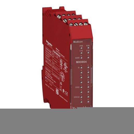Mit dem Modicon modularer Sicherheitscontroller XPSMCM lassen sich Sicherheitsanwendungen einfach konfigurieren und das System mit Modulen entsprechend der Anwendung flexibel erweitern. Dieses Erweiterungsmodul verfügt über 8 sicheren digitalen Eingängen und 4 sicheren digitalen Halbleiterausgängen, jeweils einzeln ausgeführt. Zusätzlichen stehen 2 Statusausgänge und 2 Eingänge für den Rückführkreis (EDM) und Start zur Verfügung. Zur Anbindung an den internen Bus liegt der benötigte Rückwand-Busstecker der Verpackung bei. Das Modul verfügt über abziehbare Schraubklemmen. Dieses Modul kann nur mit der CPU ab Version 2 verwendet werden. Dank des Green Premium Umweltzeichens können Sie detaillierte Informationen zu Materialinhalten, Umweltauswirkungen und Kreislaufwirtschaft erhalten, die Ihre Nachhaltigkeitsziele unterstützen.