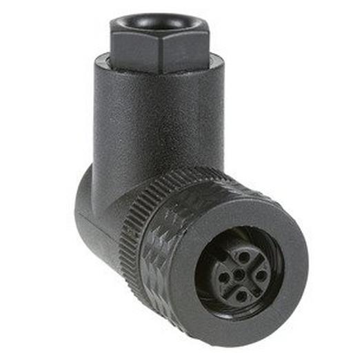 Diese Schraubklemme hat eine abgewinkelte 4-polige M12-Buchse und eine Schraubklemme mit Kunststoffklemmringen. Er ist für kritische Installationen dank des hochrobusten M12-Metallringsteckers ausgelegt.
