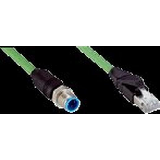 Steckverbinder und Leitungen , Verbindungsleitungen , Anschlussart Kopf A: Stecker, M12, 4-polig, gerade, D-kodiert , Anschlussart Kopf B: Stecker, RJ45, 4-polig, gerade , Zulassungen: CE, UL , Signalart: Ethernet, PROFINET , Leitung: 10 m, 4-adrig, PUR, halogenfrei , Beschreibung: Ethernet, geschirmt, PROFINET , Einsatzbereich: Schleppkettenbetrieb, Öl- /Schmiermittelbereich