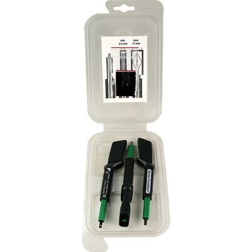 VARIO-STECKER-Set. Drei selbsthaltende Prüfspitzen mit Berührungsschutz zum Anschluss von Messleitungen mit 4 mm-Bananensteckern bzw. mit berührungsgeschützten Steckern an Buchsen mit Öffnungen von 3,5 mm bis 12 mm, z.B. CEE-, Perilex-Steckdosen.Die Prüfspitzen passen auch in die rechteckige PE-Buchse von Perilex-Steckdosen. Maximal zulässige Betriebsspannung 600 V nach IEC 61010.. Typ Artikelnr. Vario-Stecker-Set (3 Stück) Z500A Vario-Stecker-Set (1 Stück) Z500B
