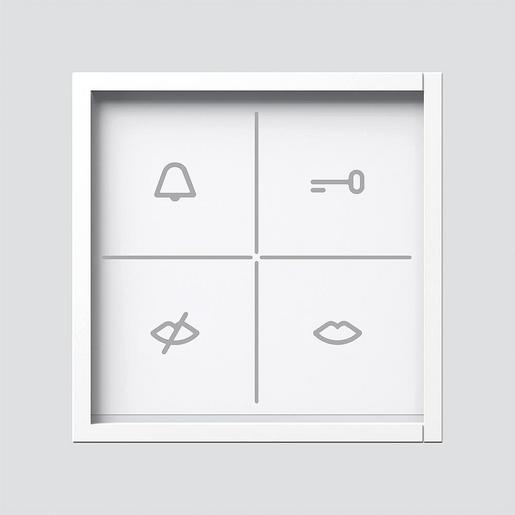 Zustandsanzeige-Modul mit optischer und akustischer Rückmeldung. Jeweils ein LED-hinterleuchtetes Symbol signalisiert die Zustände ?Ruf?, ?Nicht erreichbar?, ?Sprechen? und ?Türöffnen?. Für den Einsatz im Sprechsystem Siedle Access Professional.