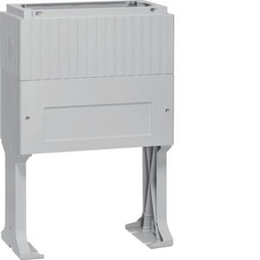 Eingrabsockel, KVS, Bausatz, Größe 0, 900 mm. Profilierter Eingrabsockel im Rippendesign, mit Befestigungsschiene aus Winkelstahl 40 x 40 x 3 mm für Bügelschellen als Zugentlastung für Kabel. Seitlich vorgestanzte Öffnung von innen verschließbare, bei Öffnung ist eine Abdeckung d = 55 mm (Zubehör) einzubauen. Zur Betauungsvermeidung ist der Sockel bis zur Höhe der Kabelbefestigungsschiene innen mit Sockelfüller aufzufüllen. Zur Standfestigkeit ist ein Bodenrost empfohlen.