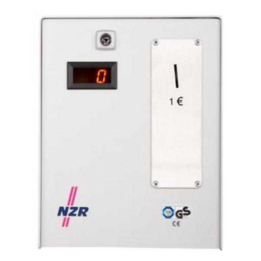 Der Zeitmünzzähler ZMZ0205 mit Einwurf Profilwertmarke ist kundenseitig einstellbar. Es können die Freigabezeit und die Anzahl der Münzen (höchstens 2) eingestellt werden. Nach Einwurf der Münzen erscheint im Display die Anzahl der eingegebenen Münzen (maximal 2 Stück). Mit dem Einwurf einer zweiten Münze kann die Laufzeit um eine eingestellte Zeiteinheit einmalig verlängert werden. Weitere Münzeinwürfe haben keine Auswirkung auf die Laufzeit. Nach Einwurf der ersten Münze schaltet das Hauptrelais ein. Die letzten 9 Minuten bzw. Sekunden werden im Display blinkend angezeigt. Elektronisch gesteuerter Münzzähler, Münzprüfer mit Lichtschranke ohne Falschgeldrückgabe, es wird nur die Größe der Münze geprüft., Einwurf: Profilwertmarke, die Grundzeit ist einstellbar von 1 Sekunde bis 65 Stunden, die kleinste einzustellende Zeiteinheit beträgt 1 Sekunde, das Gerät nimmt bis zu zwei Münzen an, einfache Zeiteinstellung durch Dippschalter, 1-stellige LED-Anzeige, Aufnahmemenge Münzbehälter: 80 Stück 0,50, einfacher Anschluss durch 5-polige Steckverbindung, pulverbeschichtetes Edelstahlgehäuse (RAL 7035 lichtgrau) mit Zylindersicherheitsschloss. Technische Daten Versorgung (U) 1x230V, , Leistungsaufnahme (S) 2 VA, Schaltstrom (I) 16 A (AC1), Ausgangsrelais Schließer, Gewicht 3,0 kg, ZMZ 0205 Einwurf: Profilwertmarke, Abmessungen (B x H x T) 185 x 238 x 150 mm