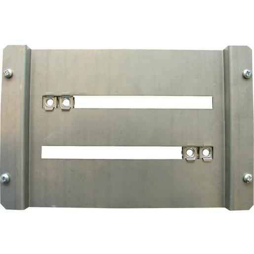 Montagetraverse für Trennerbefestigung, 1-feldbreit, für 1 Trenne NH1, Universalmontage auf Gleitschienentechnik zur Anpassung unterschiedlicher Befestigungsbohrungen, mit Befestigungsschrauben und Käfigmuttern M8, passend für M(B)T142(B), M(B)T143(B).