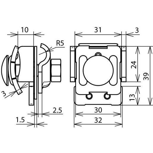 Falzklemme nach DIN EN 62561-1, zum Verbinden von Rundleitern mit Falzen. Ausführung Zweimetall für Falze Cu mit Zwischenplatte (Cupal), Leitungsführung längs oder quer.