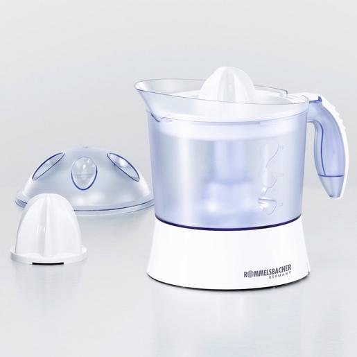 230 V ~ 40 W, weiß, zum Auspressen von Zitronen, Orangen, Grapefruit ?, leiser Motor, Rechts-/Linkslauf für optimale Saftausbeute, leichtgängige Ein-/Ausschaltung über Presskegel, abnehmbarer transparenter 1,0 Liter Saftbehälter mit Skalierung, separate Einstellung des Fruchtfleischgehaltes, integrierte Kabelaufwicklung, alle abnehmbaren Teile spülmaschinengeeignet, inklusive 2 Presskegel für große bzw. kleine Früchte, Staubschutzdeckel