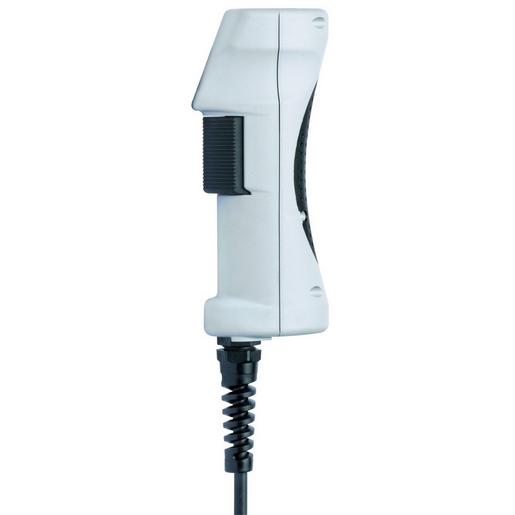 Zustimmfunktion nur in der zweiten Stufe (Mittelposition, Druckpunkt) aktiv. Beim Loslassen oder Durchdrücken (Panikfunktion) der Taste wird die Zustimmung aufgehoben (abhängig von der Verdrahtung, siehe Funktionsablauf).
