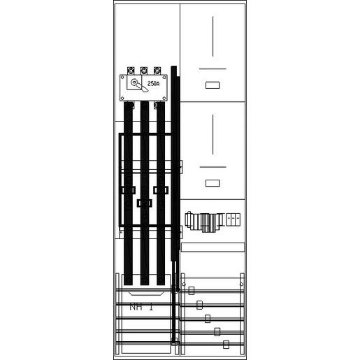 Zähler-Wandlerfeld EVS/NWS BW,250A NH1Auf SS Bestückt+Verdr,B500xH1350mm 5-pol